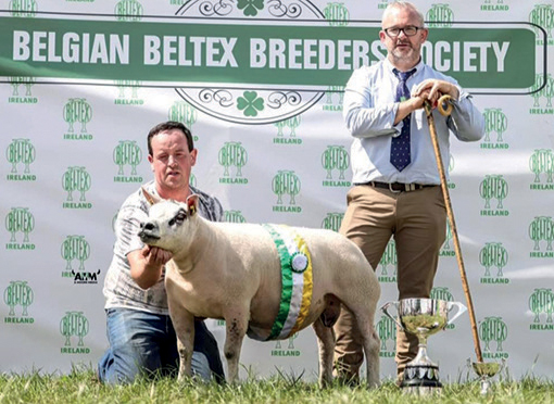 Front Row L to R: Denny Lyons Zwartables Eire, Ann Ford Vendeen, Robin Darker Charollais, Minister Denis Naughten T.D., Vera Roche Suffolk.